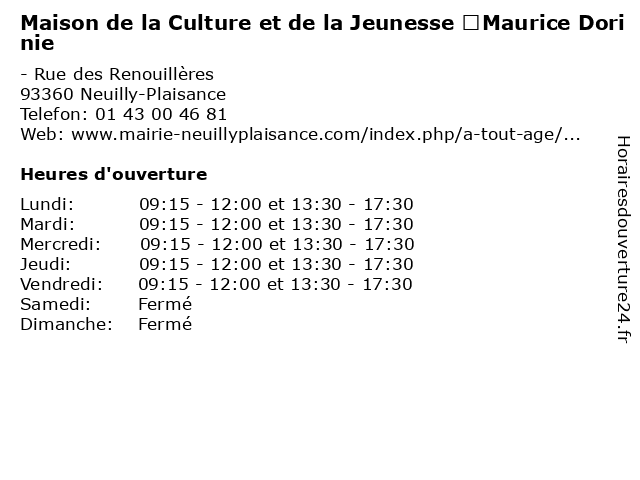 | Lundi | 09:15-12:00 et 13:30-17:30 |