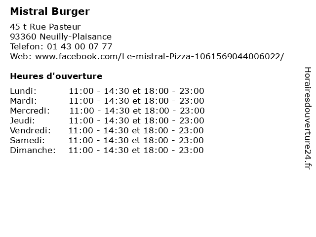 | Lundi | 11:00-14:30 et 18:00-23:00 |