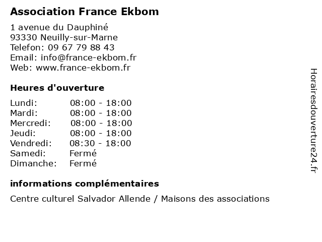 | Samedi | Fermé |