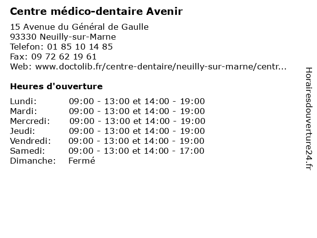 | Lundi | 09:00-13:00 et 14:00-19:00 |