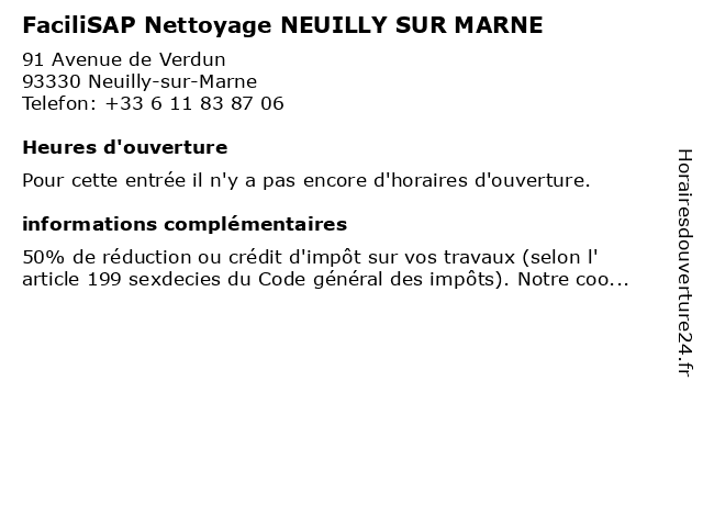 | Appeler FaciliSAP Nettoyage NEUILLY SUR MARNE | |
