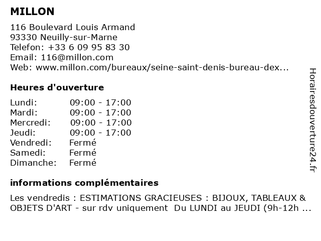 2 Gaignard Millon (Distance: 9,97 km) 24 Rue Jules Vallès, 75011 Paris ebénistes, entreprise, gaignard, menuisiers, millon, outillage, sculteurs, société 3 Maître Eric Cartier-Millon - Avocat (Distance: 14,60 km) 15 Rue de Laborde, 75008 Paris avocat, cartier, droit, eric, maître, millon, négociation 4 Maître Océane Millon de La Verteville - Avocate (Distance: 15,20 km) 7 Rue de Téhéran, 75008 Paris avocat, avocate, de, droit, la, maître, millon, négociation, océane, verteville 5 Cartier - Millon Patricia (Distance: 15,72 km) Droite 1Er Etage Porte, 75011 Paris bailleurs, biens, cartier, immobiliers, millon, nra, patricia 6 Centre médico-psychologique Grenelle - Eugène Millon (CMP) (Distance: 16,85 km) 3 rue Eugène Millon, 75015 Paris centre, cmp, consultation, docteur, eugène, grenelle, med, millon, médecin, médico, psychologique, traitement |