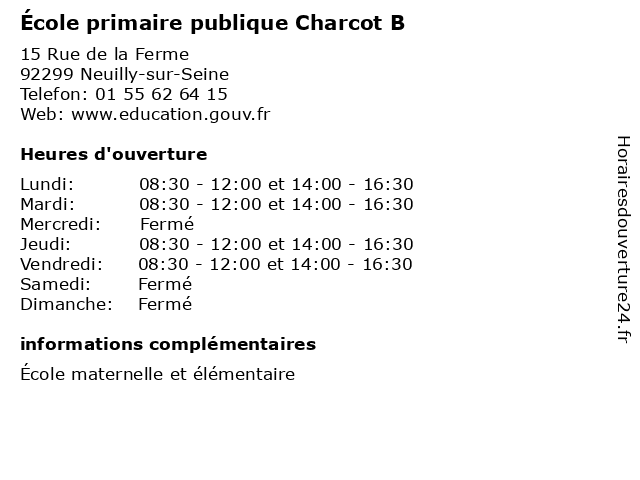 | Mardi | 08:30-12:00 et 14:00-16:30 |