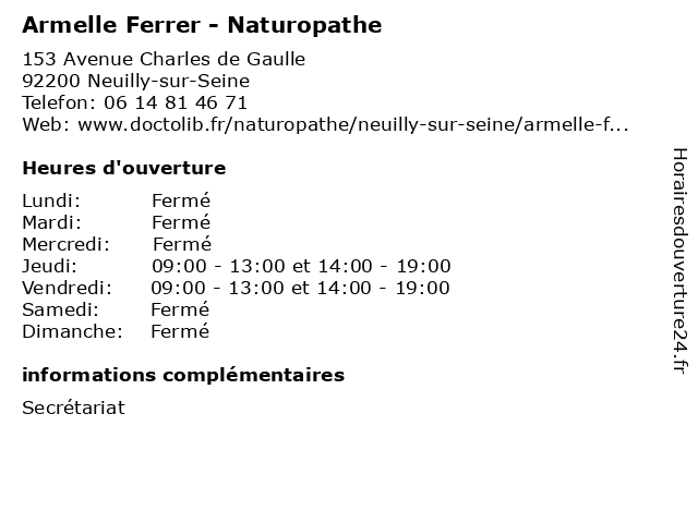 | Samedi | Fermé |