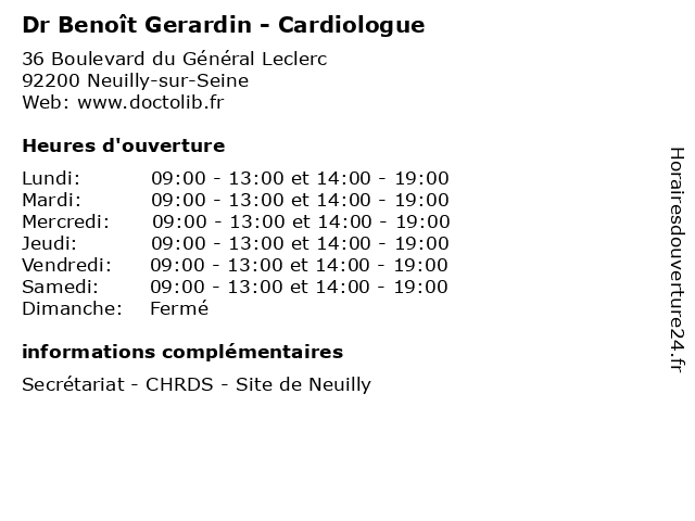 | Lundi | 09:00-13:00 et 14:00-19:00 |