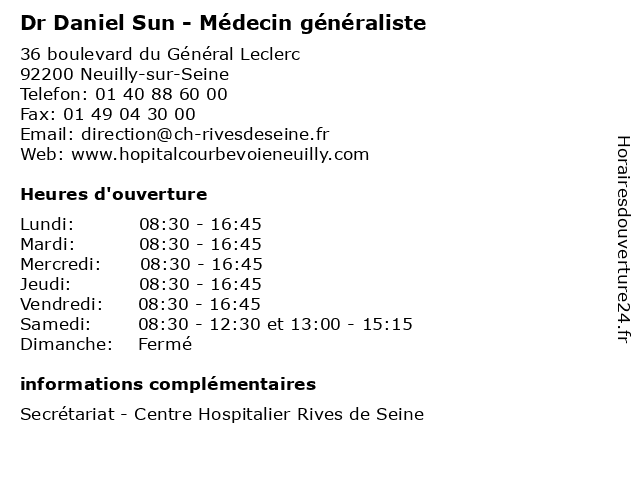 | Lundi | 08:30-16:45 |
