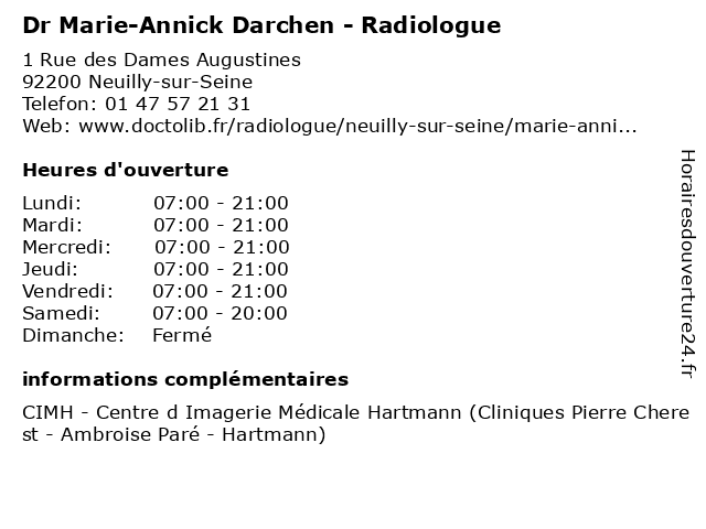 1 Dr Marie-Annick Darchen - Radiologue (Distance: 0,06 km) 28 Boulevard Victor Hugo, 92200 Neuilly-sur-Seine annick, consultation, darchen, docteur, dr, marie, med, médecin, radiologue, traitement 2 Dr Marie-Annick Darchen - Radiologue (Distance: 6,64 km) 60 Rue Gay-Lussac, 75005 Paris annick, consultation, darchen, docteur, dr, marie, med, médecin, radiologue, traitement 3 Dr Marie-Annick Darchen - Radiologue (Distance: 8,04 km) 74 Avenue des Gobelins, 75013 Paris annick, consultation, darchen, docteur, dr, marie, med, médecin, radiologue, traitement 4 Dr Marie-Annick Darchen - Radiologue (Distance: 8,06 km) 6 Place d’Italie, 75013 Paris annick, consultation, darchen, docteur, dr, marie, med, médecin, radiologue, traitement 5 Annick Goutal (Distance: 1,68 km) 93 rue de Courcelles, 75017 Paris annick, bags, business, clothing, goutal, jewelry, shoes, shopping, stores 6 Annick Goutal (Distance: 2,38 km) 74 avenue des Champs Elysées, 75008 Paris annick, bags, business, clothing, goutal, jewelry, shoes, shopping, stores |