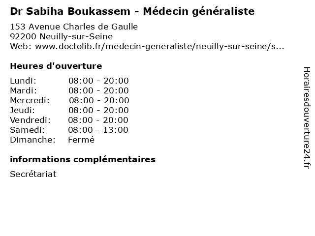 1 Maître Sabiha Sermet - Avocate (Distance: 2,55 km) 4 Rue Galilée, 75116 Paris avocate, avocats, cabinet, conseils, contentieux, juridique, justice, litiges, maître, sabiha, sermet, services 2 Dr.Sabiha Ghomari Safer - Dentiste (Distance: 4,84 km) 17 Boulevard Jean Jaures, 92100 Boulogne-Billancourt dentiste, dr.sabiha, ghomari, medecins, safer 3 Sadoun Cirbeau Sabiha (Distance: 37,73 km) 17 Rue De Bougainville, 77166 Grisy Suisnes cirbeau, restaurants, sabiha, sadoun 4 Dr Anisse Abderrezak - Ophtalmologue (Distance: 0,00 km) 153 Avenue Charles de Gaulle, 92200 Neuilly-sur-Seine abderrezak, anisse, docteur, dr, generaliste, medical, ophtalmologue, soin 5 Franck Saadoun - Masseur-kinésithérapeute (Distance: 0,00 km) 153 Avenue Charles de Gaulle, 92200 Neuilly-sur-Seine franck, kiné, kinésithérapeute, masseur, rééducation, saadoun, soin 6 Lindsay Rodrigues - Masseur-kinésithérapeute (Distance: 0,00 km) 153 Avenue Charles de Gaulle, 92200 Neuilly-sur-Seine kiné, kinésithérapeute, lindsay, masseur, rodrigues, rééducation, soin |