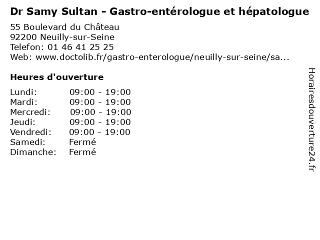 1 Dr Samy Sultan - Gastro-entérologue et hépatologue (Distance: 7,37 km) 64 Boulevard Marcel Sembat, 93200 Saint-Denis dr, enterelogue, entérologue, et, gastro, hepatolgue, hépatologue, samy, soins, sultan 2 Dr Michel Charbit - Gastro-entérologue et hépatologue (Distance: 0,00 km) 55 Boulevard du Château, 92200 Neuilly-sur-Seine charbit, consultation, docteur, dr, entérologue, et, gastro, hépatologue, med, michel, médecin, traitement 3 Dr Luc Karsenty - Gastro-entérologue et hépatologue (Distance: 0,00 km) 55 Boulevard du Château, 92200 Neuilly-sur-Seine consultation, docteur, dr, entérologue, et, gastro, hépatologue, karsenty, luc, med, médecin, traitement 4 Dr Elia Samaha - Gastro-entérologue et hépatologue (Distance: 0,00 km) 55 Boulevard du Château, 92200 Neuilly-sur-Seine consultation, docteur, dr, elia, entérologue, et, gastro, hépatologue, med, médecin, samaha, traitement 5 Dr Olivier Spatzierer - Gastro-entérologue et hépatologue (Distance: 0,00 km) 55 Boulevard du Château, 92200 Neuilly-sur-Seine consultation, docteur, dr, entérologue, et, gastro, hépatologue, med, médecin, olivier, spatzierer, traitement 6 Dr Hervé Zylberberg - Gastro-entérologue et hépatologue (Distance: 0,00 km) 55 Boulevard du Château, 92200 Neuilly-sur-Seine consultation, docteur, dr, entérologue, et, gastro, hervé, hépatologue, med, médecin, traitement, zylberberg |