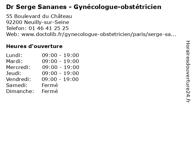| Lundi | 09:00-19:00 |