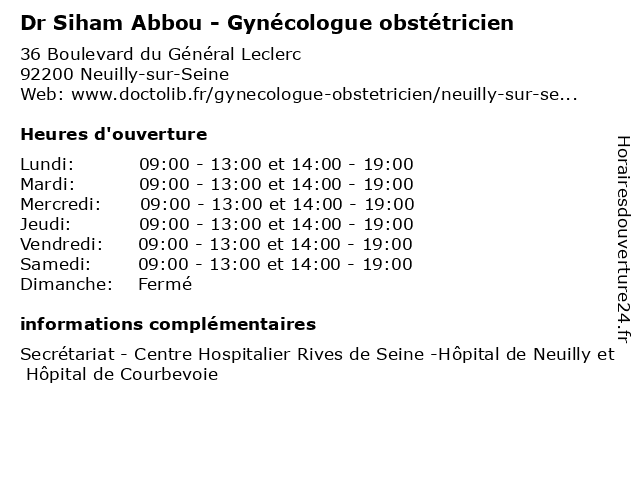 1 Dr Anissa Bouzidi - Gynécologue obstétricien (Distance: 0,00 km) 36 Boulevard du Général Leclerc, 92200 Neuilly-sur-Seine anissa, bouzidi, consultation, docteur, dr, gynécologue, med, médecin, obstétricien, traitement 2 Dr Hassan Ammous - Gynécologue obstétricien (Distance: 0,00 km) 36 Boulevard du Général Leclerc, 92200 Neuilly-sur-Seine ammous, consultation, docteur, dr, gynécologue, hassan, med, médecin, obstétricien, traitement 3 Dr Sophie Carrez - Gynécologue obstétricien (Distance: 0,00 km) 36 Boulevard du Général Leclerc, 92200 Neuilly-sur-Seine carrez, consultation, docteur, dr, gynécologue, med, médecin, obstétricien, sophie, traitement 4 Dr Fouad Lutfallah - Gynécologue obstétricien (Distance: 0,00 km) 36 Boulevard du Général Leclerc, 92200 Neuilly-sur-Seine consultation, docteur, dr, fouad, gynécologue, lutfallah, med, médecin, obstétricien, traitement 5 Dr Audrey Prouheze - Gynécologue obstétricien (Distance: 0,00 km) 36 Boulevard du Général Leclerc, 92200 Neuilly-sur-Seine audrey, consultation, docteur, dr, gynécologue, med, médecin, obstétricien, prouheze, traitement 6 Dr Laure-Marie Bontoux - Gynécologue obstétricien (Distance: 0,02 km) 36 Boulevard du Général Leclerc, 92200 Neuilly-sur-Seine bontoux, centre, courbevoie, de, docteur, dr, et, generaliste, gynécologue, hospitalier, hôpital, laure, marie, medical, neuilly, obstétricien, rives, seine, soin |
