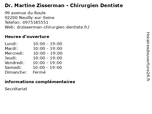 1 Dr Martine Azoulai - Chirurgien-dentiste (Distance: 0,22 km) 94 avenue Charles de Gaulle, 92200 Neuilly-sur-Seine azoulai, chirurgien, consultation, dentiste, docteur, dr, martine, med, médecin, médecine, secrétariat, traitement 2 Maître Martine Audran - Avocate (Distance: 0,29 km) 2 Rue Ancelle, 92200 Neuilly-sur-Seine audran, avocate, avocats, civils, droits, juridiques, martine, maître 3 Maître Martine Ebrard-Grellety - Avocate (Distance: 0,29 km) 2 Rue Ancelle, 92200 Neuilly-sur-Seine avocate, avocats, civils, droits, ebrard, grellety, juridiques, martine, maître 4 Maître Martine Boyer-Hemon - Avocate (Distance: 0,42 km) 27 Rue Pauline Borghese, 92200 Neuilly-sur-Seine avocate, avocats, boyer, civils, droits, hemon, juridiques, martine, maître 5 Maître Martine Zervudacki - Avocate (Distance: 1,46 km) 6 Rue Duret, 75116 Paris avocat, avocate, droit, martine, maître, négociation, zervudacki 6 Dr Martine Jardin - Angiologue (Distance: 1,58 km) 7 Rue Chalgrin, 75116 Paris angiologie, angiologue, dr, jardin, martine, vaisseaux, vasculaire |
