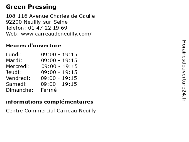 1 Green Pressing (Distance: 6,77 km) 21-23 Boulevard Des Îles, 92130 Issy-les-Moulineaux blanchisserie, green, green.pressing@orange.fr, pressing, sec 2 Sequoia Pressing (Distance: 0,76 km) 1 Rue Charcot, 92200 Neuilly-sur-Seine pressing, retouche de vêtements, sequoia 3 Urban Green Paysagiste (Distance: 1,41 km) 88 Avenue des Ternes, 75017 Paris architecte, extérieur, green, paysagiste, urban 5 Green Acres - Ncis - Office Notarial De Pontgibaud (Distance: 1,65 km) - Rue de l'Hôtel-de-Ville, 63230 Pontaumur acres, agency, apartment, de, green, ncis, notarial, office, pontgibaud, real estate 6 Sequoia Pressing (Distance: 1,78 km) 2 Rue Lebon, 75017 Paris pressing, retouche de vêtements, sequoia |