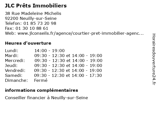 | Mardi | 09:30-12:30 et 14:00-19:00 |
