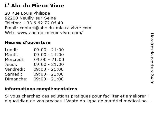 1 Abc Atelier Coiffure Red'One (Distance: 0,69 km) 13 rue de l'église, 92200 Neuilly sur seine abc, atelier, cheveux, coiffeur, coiffure, red'one 3 Hotel ABC Champerret (Distance: 1,16 km) 63 Rue Danton, 92300 Levallois-Perret abc, bar, chambres, champerret, hotel, restaurant 5 ABC Portage - Siège Social (Distance: 2,52 km) 24 Rue de Prony, 75017 Paris abc, agence, portage, professionnelle, salariale, siège, social 6 1001Pharmacies / Société ABC du Coiffeur (Distance: 2,91 km) 14 Rue Jean Bologne, 75016 Paris 1001pharmacies, abc, coiffeur, du, la médecine, la pharmacie, la santé, les soins, pharmacie, société |