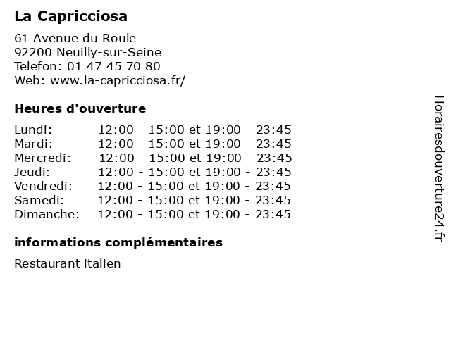 | Mardi | 12:00-15:00 et 19:00-23:45 |
