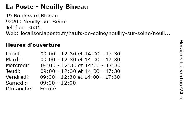 Termes de recherche pour La Poste - Neuilly Bineau:poste, relais, la, neuilly, agence, postale, colis, expédition, courriers, bineau |