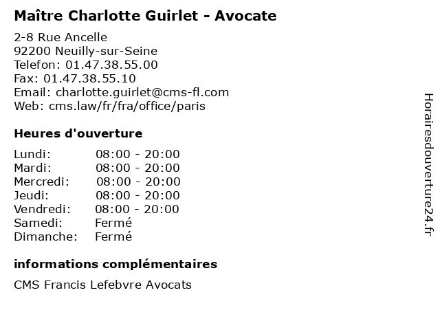 1 Maître Charlotte Guincestre - Avocate (Distance: 0,00 km) 2-8 Rue Ancelle, 92200 Neuilly-sur-Seine avocate, avocats, charlotte, civils, droits, guincestre, juridiques, maître 2 Maître Charlotte Retailleau - Avocate (Distance: 0,00 km) 2-8 Rue Ancelle, 92200 Neuilly-sur-Seine avocate, avocats, charlotte, civils, droits, juridiques, maître, retailleau 3 Maître Charlotte Rigal-Provot - Avocate (Distance: 0,00 km) 2-8 Rue Ancelle, 92200 Neuilly-sur-Seine avocate, avocats, charlotte, civils, droits, juridiques, maître, provot, rigal 4 Maître Charlotte Tachet - Avocate (Distance: 0,00 km) 2-8 Rue Ancelle, 92200 Neuilly-sur-Seine avocate, avocats, charlotte, civils, droits, juridiques, maître, tachet 5 Maître Charlotte Pernoud - Avocate (Distance: 0,06 km) 2 Rue Ancelle, 92200 Neuilly-sur-Seine avocate, avocats, charlotte, civils, droits, juridiques, maître, pernoud 6 Charlotte Aubert - Ostéopathe (Distance: 1,37 km) 12 Rue Pergolèse, 75016 Paris actes et symptômes, aubert, charlotte, expertises, ostéopathe, ostéopathie pédiatrique, posturologie |