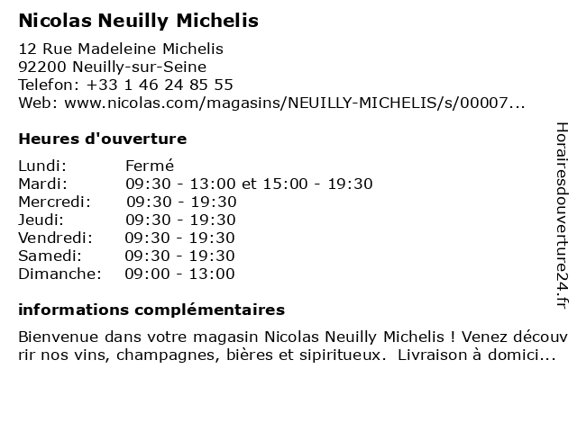 1 SFR Neuilly Sur Seine Rue Madeleine Michelis (Distance: 0,01 km) 12 Rue Madeleine Michelis, 92200 Neuilly Sur Seine compagnie de téléphone, madeleine, magasin de téléphones mobiles, michelis, neuilly, rue, seine, sfr, sur, vente et installation du câble et du satellite 2 Laboratoire Neuilly Michelis - Spécialisé AMP - BIOGROUP PARIS OUEST (Distance: 0,02 km) 18 Rue Madeleine Michelis, 92200 Neuilly-sur-Seine amp, biogroup, dépistages, laboratoire, laboratoire de diagnostic, michelis, neuilly, ouest, paris, spécialisé 3 JACADI NEUILLY MICHELIS (Distance: 0,03 km) 15 bis Rue Madeleine Michelis, 92200 Neuilly-sur-Seine chaussure fille, chaussures garçon, jacadi, manteau fille, michelis, neuilly, robe fille, vêtements bébé fille, vêtements bébé garçon, vêtements enfant, vêtements fille, vêtements garçon, vêtements naissance 4 École élémentaire publique Madeleine Michelis A (Distance: 0,46 km) 56 Rue Madeleine Micheli, 92299 Neuilly-sur-Seine cours, education, madeleine, michelis, publique, services, École, école, élémentaire 5 École maternelle publique Madeleine Michelis (Distance: 0,53 km) 1 Rue Pauline Borghese, 92299 Neuilly-sur-Seine cours, education, madeleine, maternelle, michelis, publique, services, École, école 6 Nicolas rue de Dunkerque (Distance: 5,38 km) 36 Bis Rue de Dunkerque, 75010 Paris champagnes, cidre, de, dunkerque, nicolas, rhums, rosé, rue, ruinart, spiritueux, vins, vins blancs, vins rouges, whiskies |