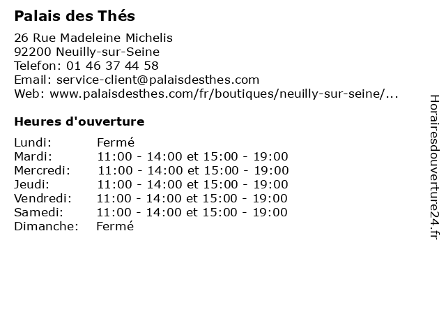 Jeudi | 11:00-14:00 et 15:00-19:00 |