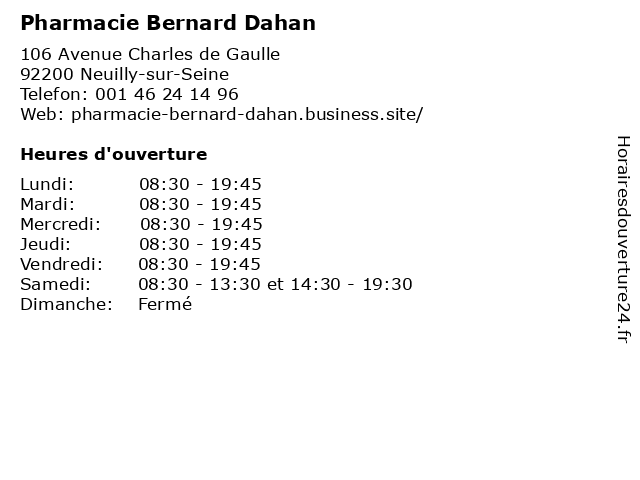 | Lundi | 08:30-19:45 |