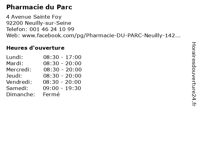 | Vendredi | 08:30-20:00 |