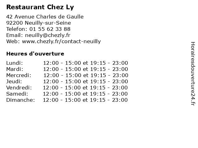 | Mardi | 12:00-15:00 et 19:15-23:00 |