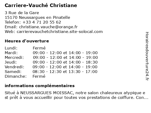 | Mercredi | 09:00-12:00 et 14:00-19:00 |