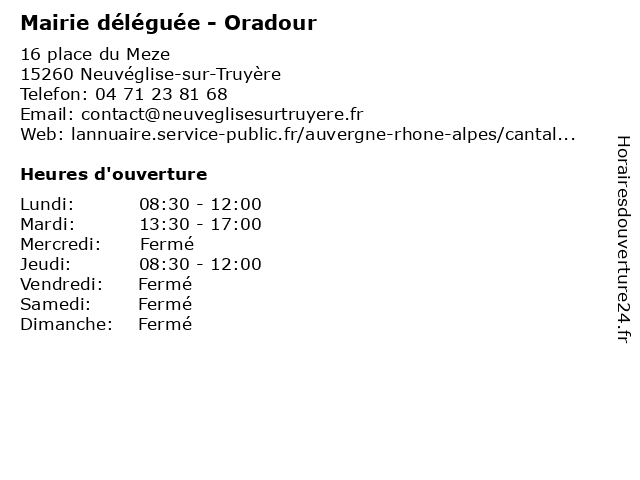 Termes de recherche pour Mairie déléguée - Oradour:administration, mairie, information, commune, oradour, déléguée, formalité |