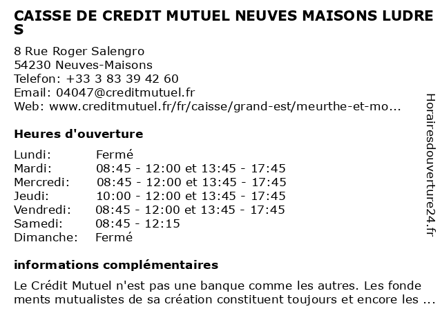 Termes de recherche pour CAISSE DE CREDIT MUTUEL NEUVES MAISONS LUDRES:de, maisons, neuves, crédit, mutuel, caisse, ludres |