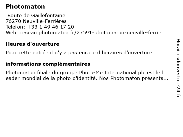 2 Photomaton (Distance: 12,84 km) Rue de Neufchâtel, 76440 Serqueux photomaton