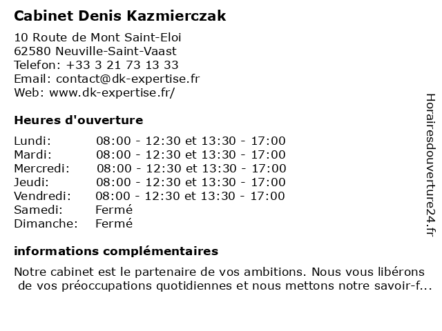 | Mercredi | 08:00-12:30 et 13:30-17:00 |