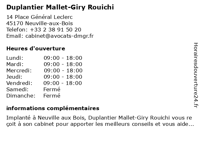 1 Boulangerie Pâtisserie Mallet (Distance: 19,90 km) 4 rue du Maréchal Leclerc, 45430 Chécy alimentation, baguette, boulangerie, chécy, commerce, gâteaux, mallet, pain, pâtisserie 2 École Elémentaire Publique Roger Giry (Distance: 21,05 km) 48 Rue Saint Sauveur, 45340 Nibelle cours, education, elémentaire, giry, primaire, publique, roger, services, école, élémentaire 3 Maître Sonia Mallet Giry - Avocat (Distance: 21,37 km) 60 Rue de la Bretonnerie, 45000 Orleans avocat, giry, justice, lois, maitre, mallet, maître, sonia 4 Mallet-Giry Rouichi (Distance: 21,37 km) 60 Rue de la Bretonnerie, 45000 Orléans giry, mallet, rouichi 5 Dr Philippe Mallet - Médecin généraliste (Distance: 41,73 km) 12 Rue de la Blanchisserie, 45600 Sully-sur-Loire consultation, docteur, domicile, dr, en, générale, généraliste, mallet, médecin, médecine, philippe, santé, visite 6 MMA -Tietze-Mallet Sophie (Distance: 51,96 km) 25 Rue de la République, 77460 Souppes-sur-Loing mallet, mma, sophie, tietze |