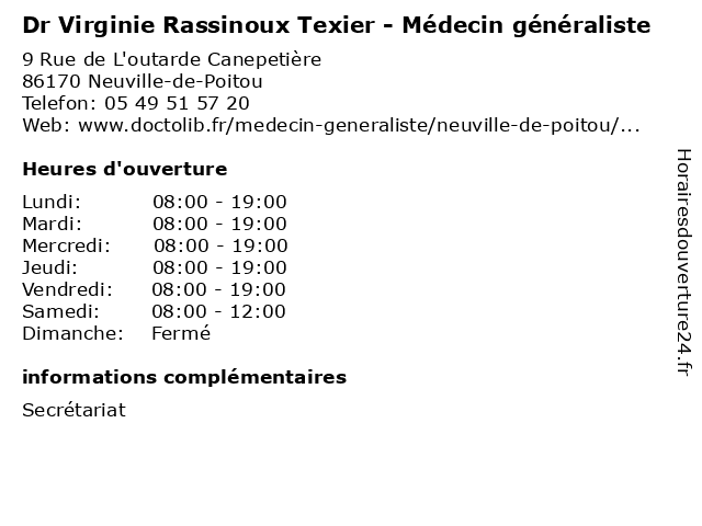 | Jeudi | 08:00-19:00 |