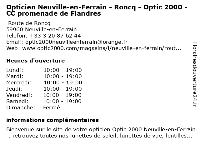 Termes de recherche pour Opticien Neuville-en-Ferrain - Roncq - Optic 2000 - CC promenade de Flandres:en, de, neuville, opticien, lunettes de soleil, 2000, optic, flandres, cc, lentilles de contact, promenade, ferrain, roncq, lunettes de vue, optic 2000, ray-ban, rayban, opticien optic 2000 |