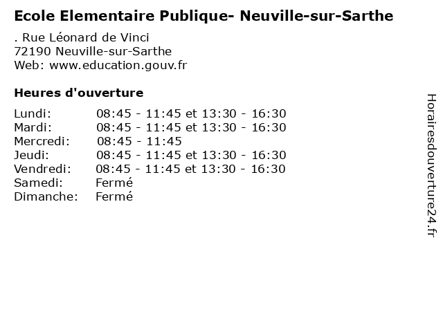 | Mardi | 08:45-11:45 et 13:30-16:30 |