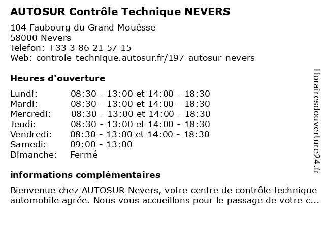 | Lundi | 08:30-13:00 et 14:00-18:30 |