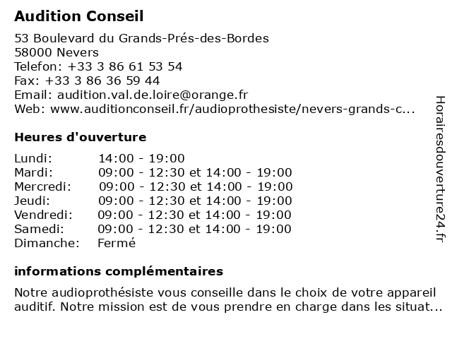 | Mercredi | 09:00-12:30 et 14:00-19:00 |