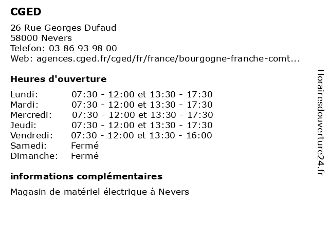| Vendredi | 07:30-12:00 et 13:30-16:00 |