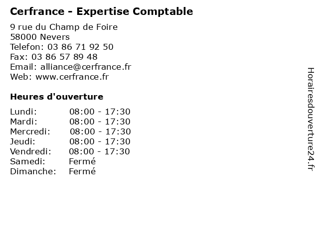 2 Delettre Expertise - Cabinet (Distance: 3,37 km) 6 Rue Barreau, 58000 Nevers assurance, auto, automobile, cabinet, collision, conseil, d'expertise, d'ouverture, delettre, du, expertise, heures, horaires 3 Delettre Expertise - Expertise (Distance: 3,37 km) 6 Rue Barreau, 58000 Nevers assurance, auto, automobile, cabinet, collision, conseil, d'expertise, d'ouverture, delettre, du, expertise, horaires 4 Activ'Expertise Berry Est (Distance: 17,18 km) La Boulonnerie, 18150 La Guerche-sur-l'Aubois activ'expertise, berry, est 5 Cerfrance - Expertise Comptable (Distance: 24,68 km) . Rue du 19 Mars 1962, 58700 Prémery aide, cerfrance, comptable, conseil, entreprises, expertise, financement, fiscalite 6 Cerfrance - Expertise Comptable (Distance: 30,32 km) 5 rue Gaspard Monge, 58300 Décize aide, cerfrance, comptable, conseil, entreprises, expertise, financement, fiscalite |