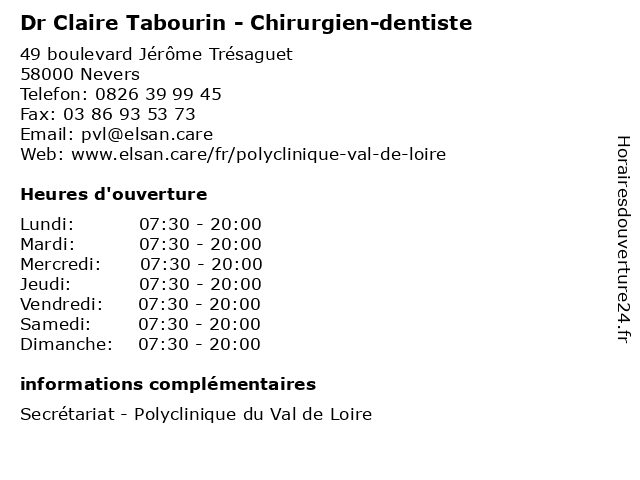 2 Pharmacie Barathé Tabourin (Distance: 1,31 km) 79 Rue de Nievre, 58000 Nevers barathé, conseils, matériel, médical, médicaments, parapharmacie, pharmacie, soins, tabourin 3 Claire de Oliveira - Masseur kinésithérapeute (Distance: 7,45 km) 6-15-24-36 rue Simone Veil, 58600 Garchizy claire, consultation, de, docteur, kinésithérapeute, masseur, med, médecin, médecine, oliveira, traitement 4 Dr Sylvain Picard - Chirurgien-dentiste (Distance: 0,00 km) 49 boulevard Jérôme Trésaguet, 58000 Nevers chirurgien, consultation, dentiste, docteur, dr, med, médecin, médecine, picard, sylvain, traitement 5 Dr Bérengère Laurent-Guery - Chirurgien général (Distance: 0,00 km) 49 boulevard Jérôme Trésaguet, 58000 Nevers berengere, bérengère, chirurgien, consultation, docteur, dr, guery, général, laurent, med, médecin, médecine, traitement 6 Dr Pascal Lachaise - Chirurgien-dentiste (Distance: 0,00 km) 49 boulevard Jérôme Trésaguet, 58000 Nevers chirurgien, consultation, dentiste, docteur, dr, lachaise, med, médecin, médecine, pascal, traitement |