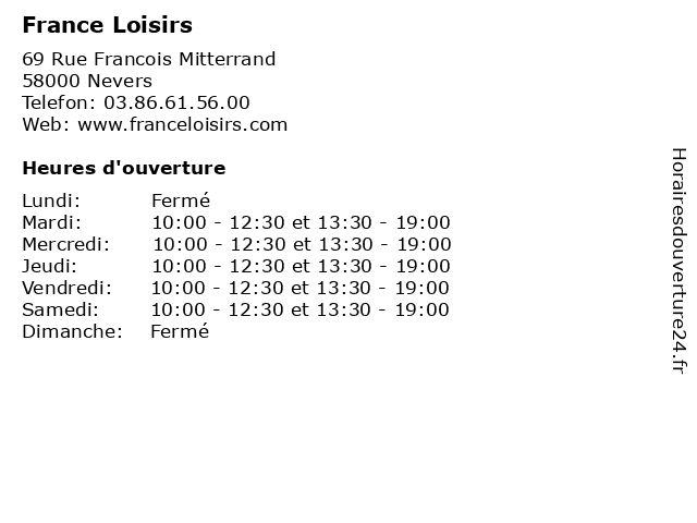 | Mercredi | 10:00-12:30 et 13:30-19:00 |
