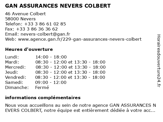 Termes de recherche pour GAN ASSURANCES NEVERS COLBERT:nevers, gan, assurances, colbert |