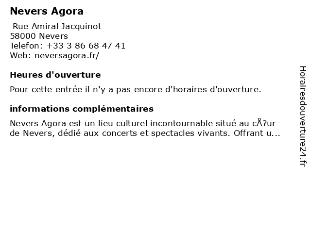 1 Restaurant Inter-Administratif Agora (Distance: 2,08 km) . Rue Charles Roy, 58000 Nevers administratif, agora, association, inter, menu, restaurant, restauration 2 L'Inkub Agora Business (Distance: 3,25 km) 7 Place du Général Francis Pittié, 58000 Nevers agora, business, l'inkub 3 Agora Fit' (Distance: 58,75 km) 3 Rue de la Forêt, 58500 Clamecy agora, club, fit', fitness, forme, gym, musculation, sport |