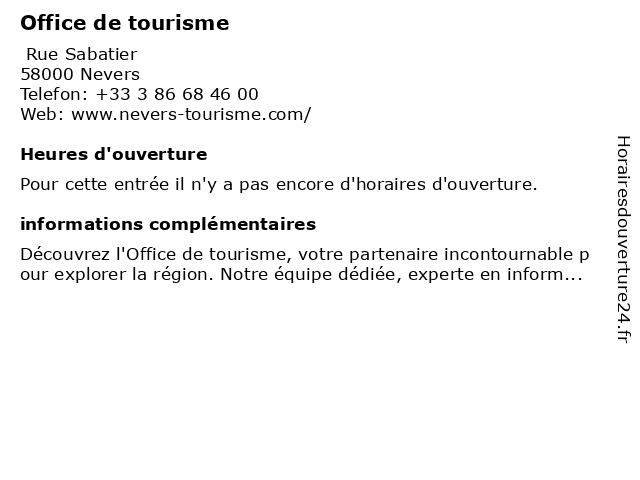 1 Office de Tourisme de Nevers - Basse saison - Les fériés de Mai (Distance: 0,03 km) - Rue Sabatier, 58008 Nevers ancien, art, basse, chateau, de, et, exposition, fériés, histoire, les, livre, mai, monument, musee, musée, nevers, office, saison, savoir, tourisme 2 Office de Tourisme de Nevers - Haute saison (Distance: 0,03 km) - Rue Sabatier, 58008 Nevers ancien, art, chateau, de, et, exposition, haute, histoire, livre, monument, musee, musée, nevers, office, saison, savoir, tourisme, zoo 3 Office Notarial - Francis Lheritier & Nicolas Ciron (Distance: 0,26 km) 6 avenue St Just, 58002 Nevers achat, ciron, et, francis, lheritier, location, nicolas, notaire, notarial, office, vente 4 Jetset Voyages / Nevers Tourisme (Distance: 0,30 km) 27 Rue de Rémigny, 58000 Nevers agence, billet d'avion et hôtel pour votre club, jetset, nevers, séjour, tourisme, voyages 5 Selectour - Nevers Tourisme (Distance: 0,30 km) 27 Rue de Rémigny, 58000 Nevers billets de train, nevers, selectour, séjours, tourisme, vols, voyage 6 Jetset Voyages / Nevers Tourisme (Distance: 0,45 km) 1 Place Maurice Ravel, 58000 Nevers agence, billet d'avion et hôtel pour votre club, jetset, nevers, séjour, tourisme, voyages |