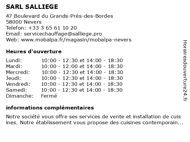 | Lundi | 10:00-12:30 et 14:00-18:30 |