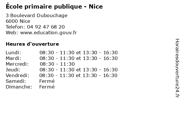 | Mardi | 08:30-11:30 et 13:30-16:30 |