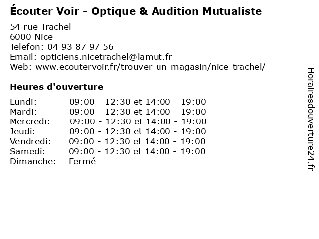 | Lundi | 09:00-12:30 et 14:00-19:00 |