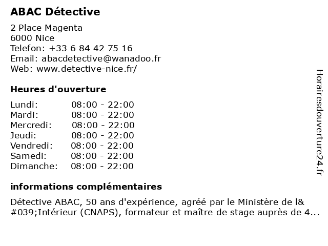 | Samedi | 08:00-22:00 |