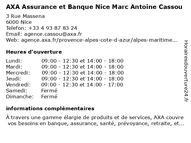 | Lundi | 09:00-12:30 et 14:00-18:00 |